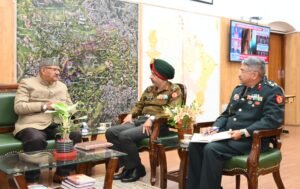 उत्तराखण्ड सब एरिया मुख्यालय में जीओसी और डिप्टी जीओसी को थल सेना दिवस की बधाई देते सैनिक कल्याण मंत्री गणेश जोशी