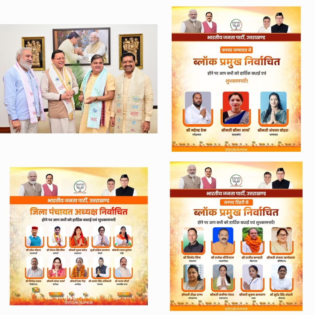 श्री भट्ट ने कहा कि देवभूमि की जनता का विश्वास भाजपा के साथ है। यह प्रधान, जिला पंचायत सदस्य और क्षेत्र पंचायत सदस्य के परिणाम से साबित हो गया था। हमारे कार्यकर्ता 85 फ़ीसदी से अधिक प्रधान पदों पर निर्वाचित हुए हैं। इसी तरह ब्लॉक प्रमुख की 70 फ़ीसदी से अधिक सीटें भाजपा उम्मीदवारों ने जीती है। वहीं अब तक सामने आए 11 जिला पंचायत अध्यक्ष के नतीजे में 10 भाजपा के पक्ष में आए हैं।