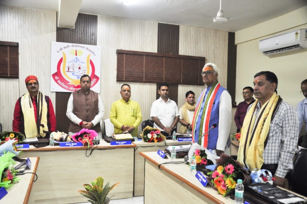देहरादून 9 जुलाई।श्री बदरीनाथ-केदारनाथ मंदिर समिति की बोर्ड औपचारिक बैठक अध्यक्ष हेमंत द्विवेदी जी की अध्यक्षता में समिति के केनाल रोड कार्यालय सभागार में शुरु हुई ।भगवान श्री बदरीविशाल तथा भगवान श्री केदारनाथ की आरती के साथ बैठक की शुरुआत हुई।बैठक में सर्वप्रथम नवनियुक्त सदस्यों का परिचय हुआ साथ ही पदाधिकारियों तथा सदस्यों का स्वागत किया गया । देश के यशस्वी प्रधानमंत्री नरेंद्र मोदी के विजन के अनुरूप अब तक सफलतापूर्वक चल चारधाम यात्रा कुशल मार्गदर्शन हेतु प्रदेश सरकार तथा यशस्वी मुख्यमंत्री पुष्कर सिंह धामी का आभार जताया गया।