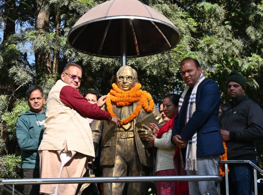महापरिनिर्वाण दिवस के अवसर पर बाबा साहेब आम्बेडकर की मूर्ति पर माल्यार्पण कर उन्हें श्रद्धासुमन अर्पित करते कैबिनेट मंत्री गणेश जोशी