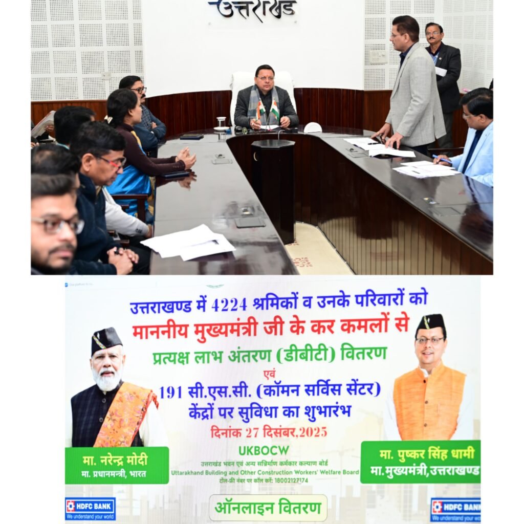 मुख्यमंत्री धामी ने कहा कि राज्य के 191 कॉमन सर्विस सेंटरों में श्रमिकों के लिए शुरू की गई विशेष व्यवस्था से अब उन्हें सरकारी कार्यालयों के चक्कर नहीं लगाने पड़ेंगे