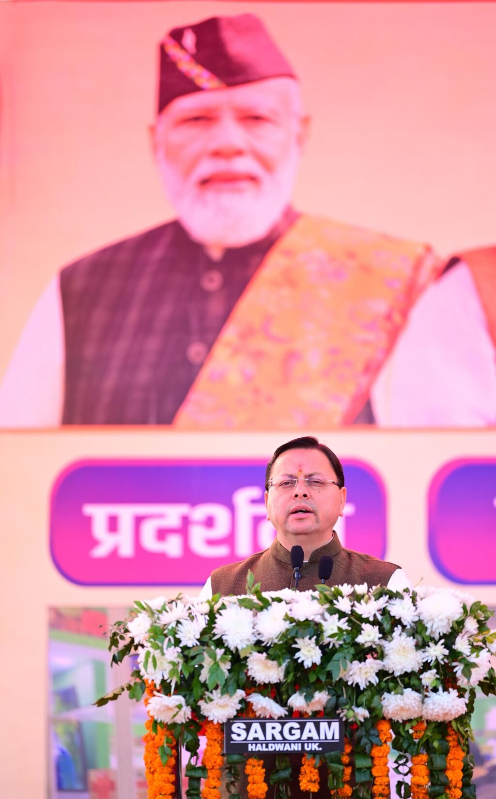 अपने संबोधन में मुख्यमंत्री धामी ने हल्द्वानी क्षेत्र में हो रहे विकास कार्यों का विस्तृत उल्लेख किया। उन्होंने बताया कि हल्द्वानी में योग एवं आयुष अस्पताल, अंबेडकर पार्क, ओपन जिम जैसे अनेक जनकल्याणकारी कार्य किए गए हैं। हल्द्वानी मेडिकल कॉलेज में राजकीय कैंसर संस्थान का निर्माण तेज़ी से चल रहा है। उन्होंने कहा कि 792 करोड़ रुपये की रिंग रोड, हल्द्वानी–लालकुआं बाईपास, नगर की सड़कों का सुधारीकरण, मल्टीस्टोरी पार्किंग निर्माण, वेस्ट मैनेजमेंट, लीगेसी वेस्ट ट्रीटमेंट प्लांट, पोलिनेटर पार्क और एस्ट्रो पार्क जैसे कार्य क्षेत्रीय विकास को नई ऊंचाई पर ले जाएंगे। इसके अतिरिक्त हल्द्वानी से विभिन्न जिलों तथा मुंबई के लिए रेल एवं हेलीकॉप्टर सेवाओं की शुरुआत कनेक्टिविटी को बेहतर बनाने की दिशा में महत्वपूर्ण कदम है।