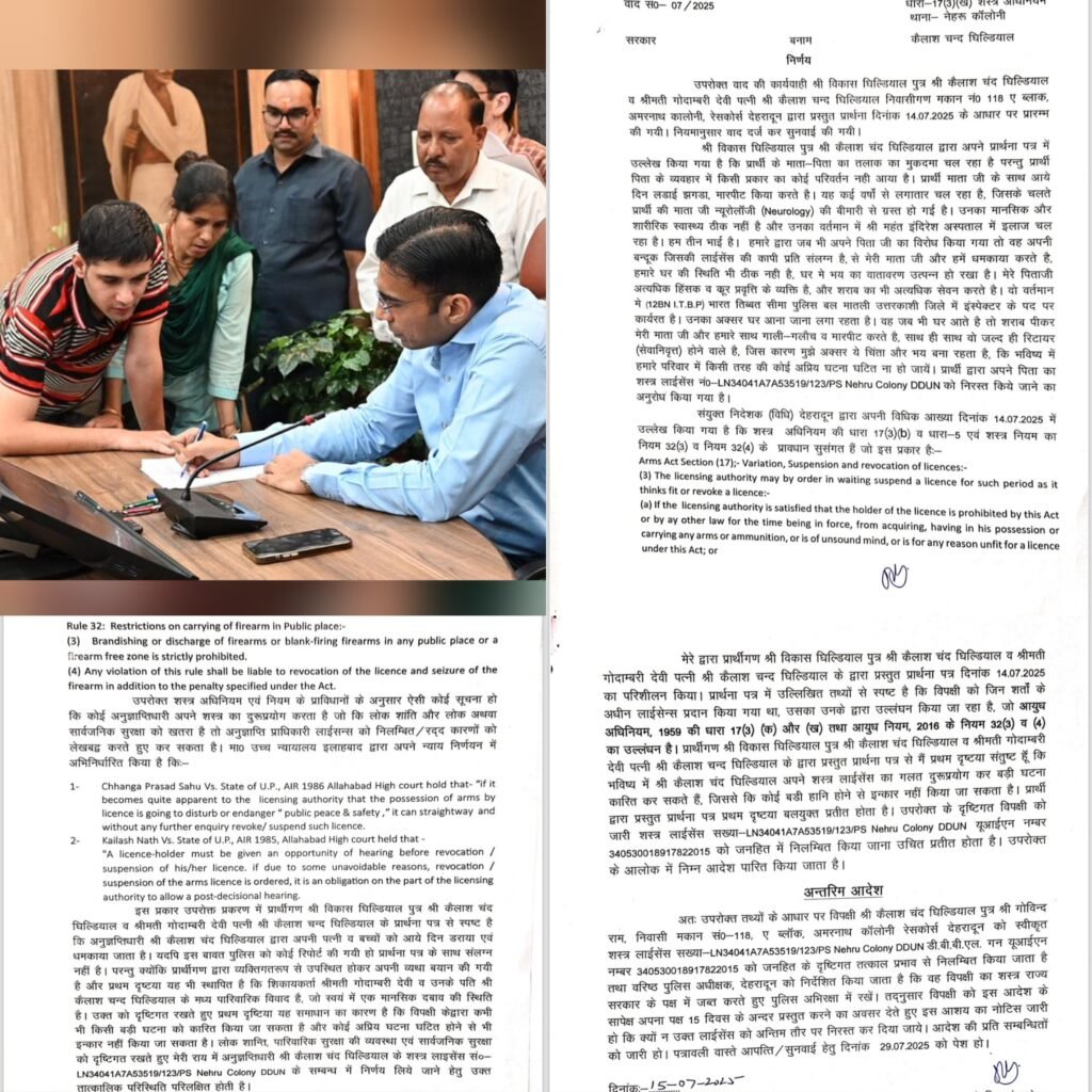 सगे बेटे व पत्नी के लिए ही खतरे का सबब बना शस्त्र; डीएम ने विशेषाधिकार प्रयोग कर मौके पर ही किया लाईसेंस निलम्बित;