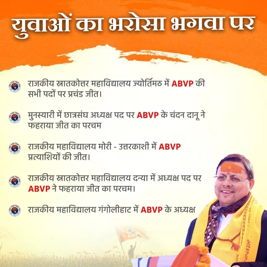 धामी सरकार की नीतियों पर GenZ का भरोसा बरकरार, 100 से अधिक कॉलेजों में ABVP का परचम