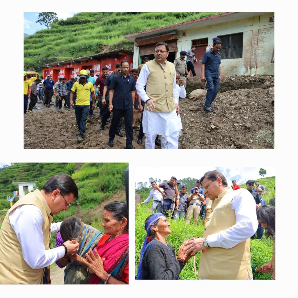 पौड़ी गढ़वाल में सीएम धामी ने आपदा से प्रभावित नैठा बाजार, सैंजी गांव और बांकुड़ा क्षेत्र का स्थलीय निरीक्षण किया और माताओं-बहनों से भेंट की। इस दौरान सीएम धामी को देख वे अपने आंसुओं को नहीं रोक सकी। सीएम धामी ने उन्हें भरोसा दिलाया कि बेटे और भाई की तरह हर संकट में उनके साथ खड़े हैं।