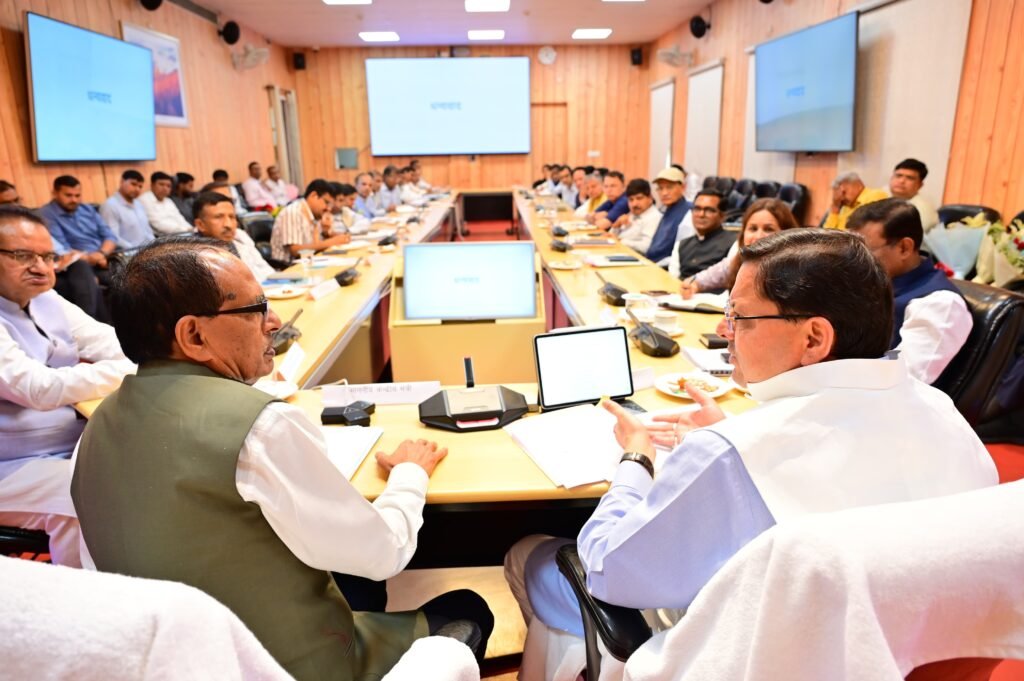 केन्द्रीय कृषि एवं कृषक कल्याण तथा ग्रामीण विकास मंत्री श्री शिवराज सिंह चौहान ने सोमवार को मुख्यमंत्री श्री पुष्कर सिंह धामी के साथ मुख्यमंत्री आवास देहरादून में कृषि एवं ग्रामीण विकास विभाग की केन्द्रीय योजनाओं की समीक्षा की। बैठक में उत्तराखंड के कृषि मंत्री श्री गणेश जोशी, राज्य आपदा प्रबंधन सलाहकार समिति के उपाध्यक्ष श्री विनय रोहिला भी उपस्थित थे।