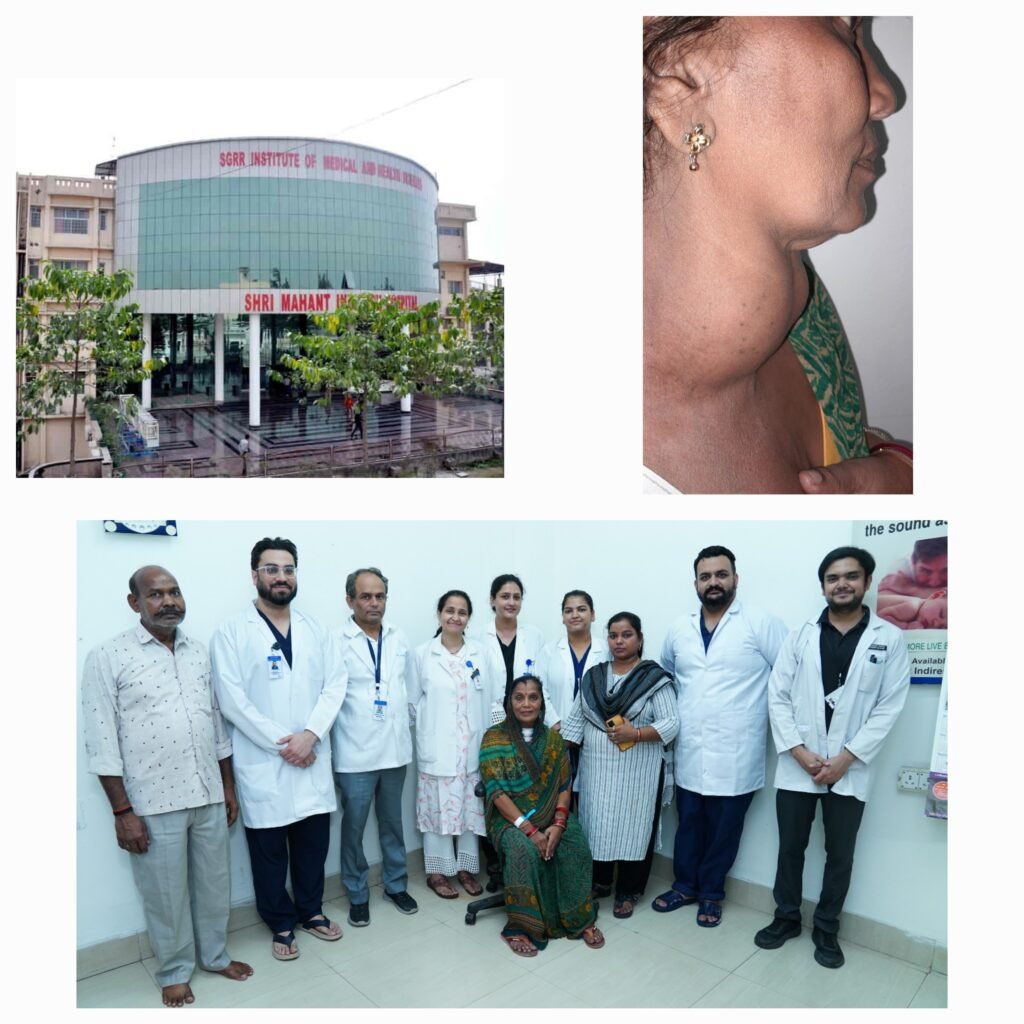 श्री महंत इन्दिरेश अस्पताल के नाक कान गला रोग विभाग की विभागाध्यक्ष डाॅ त्रिप्ती ममगाईं व उनकी टीम ने एक मरीज़ के गले से एक किलो का थायराइड ट्यूमर निकाला