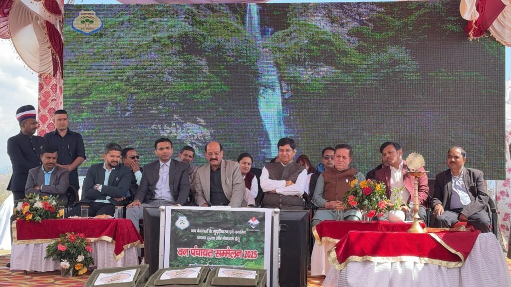 मा0 मुख्यमंत्री के दिशा निर्देशों पर वन पंचायतों के सुदृढीकरण एवं वनाग्नि आपदा सुरक्षा और रोकथाम को लेकर बुधवार को जिला प्रशासन द्वारा चिरमिरी टॉप चकराता में नव गठित वन पंचायतों के साथ महाधिवेशन आयोजित किया गया। सम्मेलन में मा0 कैबिनेट मंत्री श्री सुबोध उनियाल ने बतौर मुख्य अतिथि शिरकत की। इस दौरान चकराता विधायक श्री प्रीतम सिंह भी मौजूद रहे। सम्मेलन में वन पंचायतों के अधिकार एवं दायित्वों पर गहनता से मंथन और प्रशिक्षण दिया गया और वनाग्नि रोकथाम एवं *”जंगल से जनकल्याण”* का सामूहिक संकल्प लिया गया। महाधिवेशन में कैबिनेट मंत्री ने जिला प्रशासन को ओर से आपदा मद से वन पंचायतों को सशक्त बनाने हेतु प्रत्येक वन पंचायतों को 15-15 हजार की धनराशि के चैक वितरित भी किए।