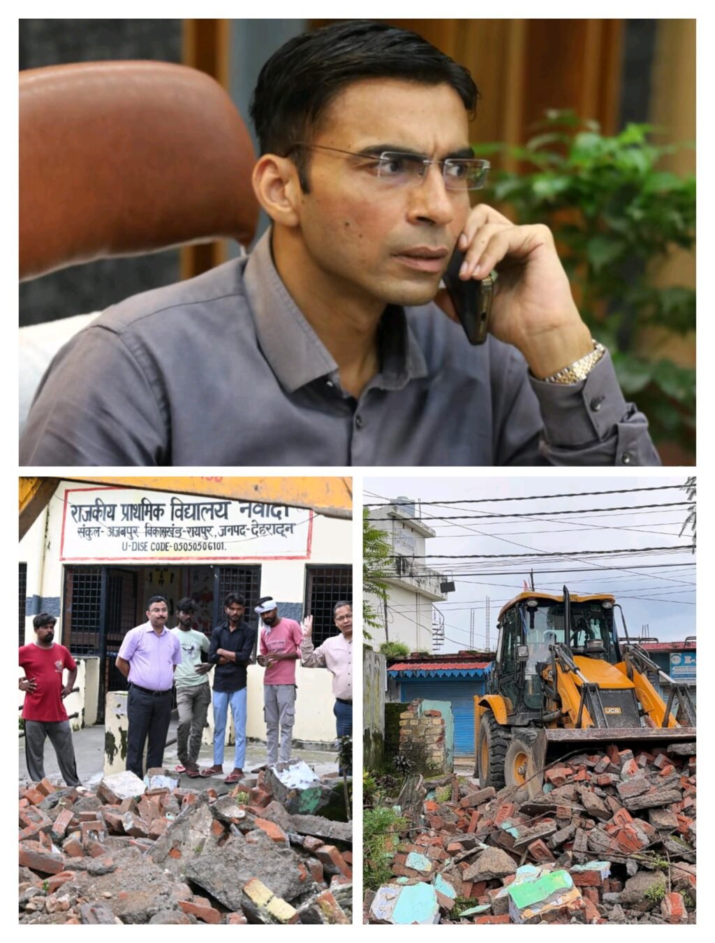 देहरादून दिनांक 23 अगस्त 2025 (सू.वि), जिलाप्रशासन देहरादून ने सरकारी भूमि पर अतिक्रमण कर किए गए निर्माण को हटा दिया गया है। राजकीय प्राथमिक विद्यालय नवादा परिसर में बनी अवैध निर्माण कर बनाई गई मजार को आज ध्वस्त कर दिया। जिला प्रशासन को शिकायत प्राप्त हुई थी कि स्कूल परिसर में सरकारी भूमि पर अवैध निर्माण कर मजार बनाई गई है, जिससे बच्चों की पढ़ाई का वातावरण भी प्रभावित हो रहा है।