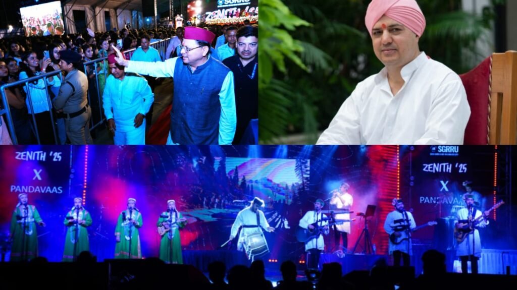 श्री गुरु राम राय विश्वविद्यालय के वार्षिक सांस्कृतिक महोत्सव जेनिथ फेस्ट 2025 के दूसरा दिन देशभक्ति के गीतों की बहार बही। मुख्यमंत्री पुष्कर सिंह धामी ने देश प्रेम की गीतों को देखा और छात्र-छात्राओं की हौंसलाफजाई की।