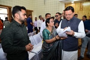 मुख्यमंत्री श्री पुष्कर सिंह धामी ने शनिवार को मुख्यमंत्री आवास स्थित मुख्य सेवक सदन में प्रदेश के विभिन्न क्षेत्रों से आए लोगों की समस्याओं को सुना और संबंधित अधिकारियों को यथा शीघ्र समाधान के निर्देशित दिए।