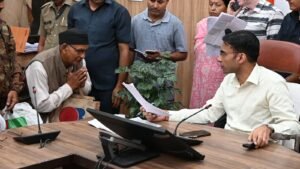 मा0 मुख्यमंत्री के सुखदजन के संकल्प से प्रेरित डीएम का जनता दर्शन शिकायतों का समयबद्ध निस्तारण किया जा रहा है। पुनर्वास पशुलोक में बांध विस्थापित महिला को भूमि फर्जीवाडे़ न्याय की आस जगी है। पुलमा देवी प्रकरण पर डीएम ने बनाई समिति बनाई है। डीएम के जन दर्शन पर जनता का विश्वास बढ रहा है। जनता दर्शन में समाधान, रोजगार, प्रवर्तन सभी समाधान जनमानस को मिल रहे है। दिव्यांग बबीता को रोजगारपरक प्रशिक्षण व स्वरोगार मौके पर ही जीएमडीआईसी से स्वीकृत कराया वहीं पशुपति इन्कलेव रायुपर, अन्नपूर्णा गुंसाई के निजी प्लाट में सीवर बहने की शिकायत पर आज शाम ही निगम से स फाई करवाई। जनता दर्शन में जर्जर स्कूल भवन की शिकायत पर डीएम नाराजगी जाहिर करते हुए सीईओ से एक दिवस भीतर कृत कार्यवाही की रिपोर्ट तलब की साथ ही पूछा कि इतना बजट देने के बाद भवन जर्जर क्यों है सम्बन्धित बीईओ क्या कर रहे है। इसी प्रकार महीने पूर्व फोरेस्ट सर्वेक्षण के निर्देश फोलो न होेने पर डीएफओ पर कड़ी नाराजगी जताते हुए 3 दिवस भीतर अमल न किये जाने पर कार्यवाही की चेतावनी भी दी। फरियादी के समक्ष ही एमडीडीए XEN से भवन उल्लंघनकर्ता पर प्रवर्तन की तिथि अंकित कराई तथा एमडीडीए के अधिकारियों को नोटिस देने के उपरान्त भी कार्यवाही न होने तलब किया।